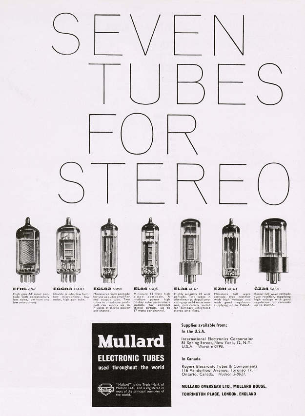 - #17075 [Pilotrol], 26-02-02 04:431960年代初Mullard廣告展示七款早期立體聲時代常用的真空管!