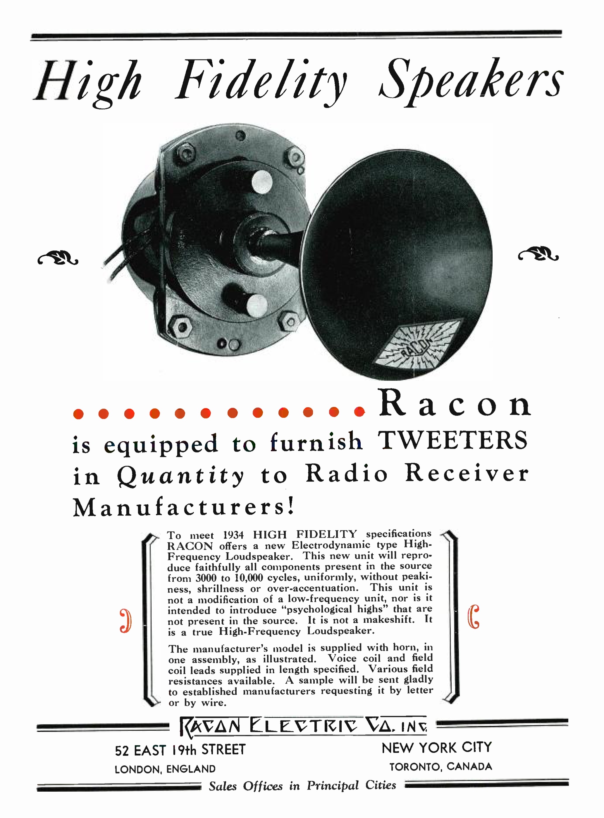 - #16996 [Pilotrol], 25-09-02 06:56Racon Electrodynamic High Frequency loudspeaker是Racon於1931年推出的高音號角揚聲器,此機與WE596A/597A和Jensen Q皆是音響史上最早期的高頻號角揚聲器!