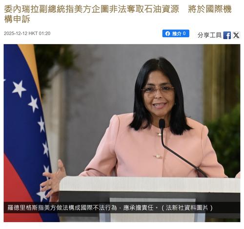 委內瑞拉副總統兼石油部長羅德里格斯表示,美國扣押一艘委內瑞拉運油輪的行為,暴露美方企圖非法奪取委內瑞拉石油資源的真正目的。
