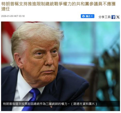 美國總統特朗普在名下社交媒體發文表示,那些在國會參議院支持推進限制總統戰爭權力的共和黨議員,不應獲得連任。