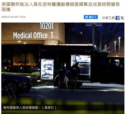 美聯社報道,美國波特蘭周四(8日)下午發生涉及聯邦執法人員的槍擊案。隸屬聯邦海關及邊境保衛局(CBP)的特工在一次行動中開火,擊傷一男一女。由於前一日明尼蘇達州剛發生同類致命事故,令今次事件更添敏感。聯邦調查局(FBI)波特蘭分局已介入並主導調查工作。