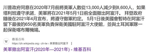 2001年「9.11」恐襲發生後,美國發動阿富汗戰爭,推翻被美方認定庇護「基地」組織的塔利班政權,但始終未能消滅塔利班,也未能在阿富汗重建秩序。2020年2月29日,美國與塔利班在卡塔爾首都多哈簽署旨在結束阿富汗戰爭的和平協議,美國承諾逐步撤離剩餘的1.2萬駐阿美軍,其他西方國家亦同意撤軍;塔利班承諾不再讓阿富汗成為恐怖分子的庇護所。